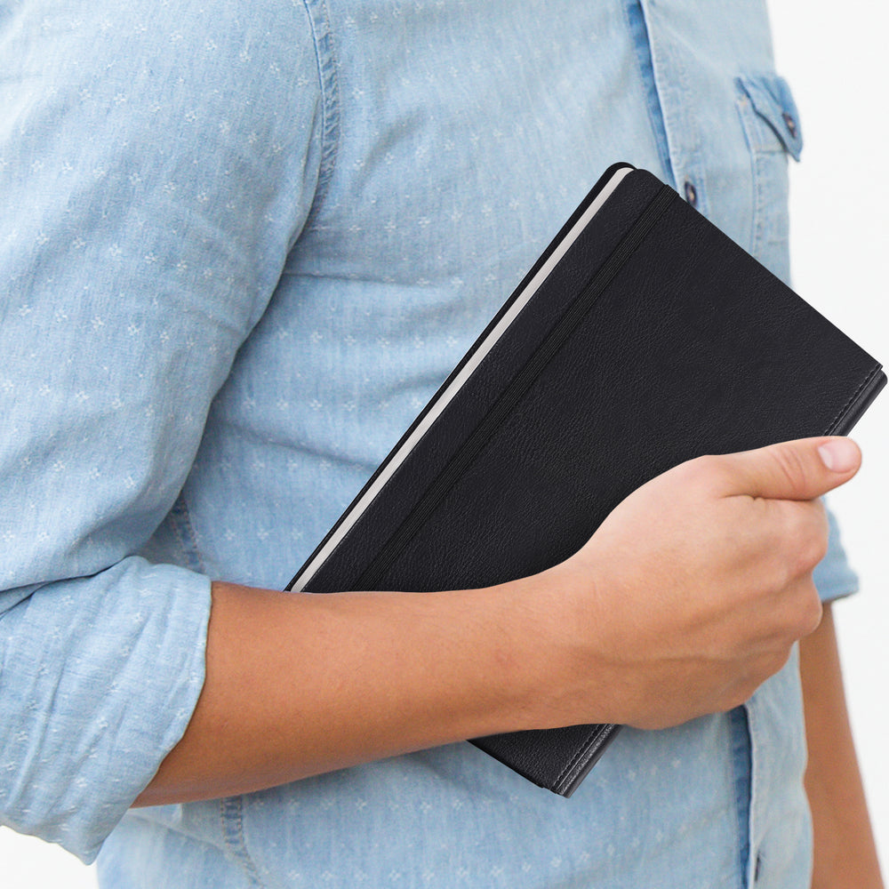 STYLISH AND PROFESSIONAL HARDCOVER JOURNAL/NOTEBOOK - The hard cover protects and also provides a handy surface for jotting down your notes.Smooth & Elegant black leather cover great for all kinds of occasions.Our notebooks are perfect for journals to writing in, or note taking in college classes or meetings.